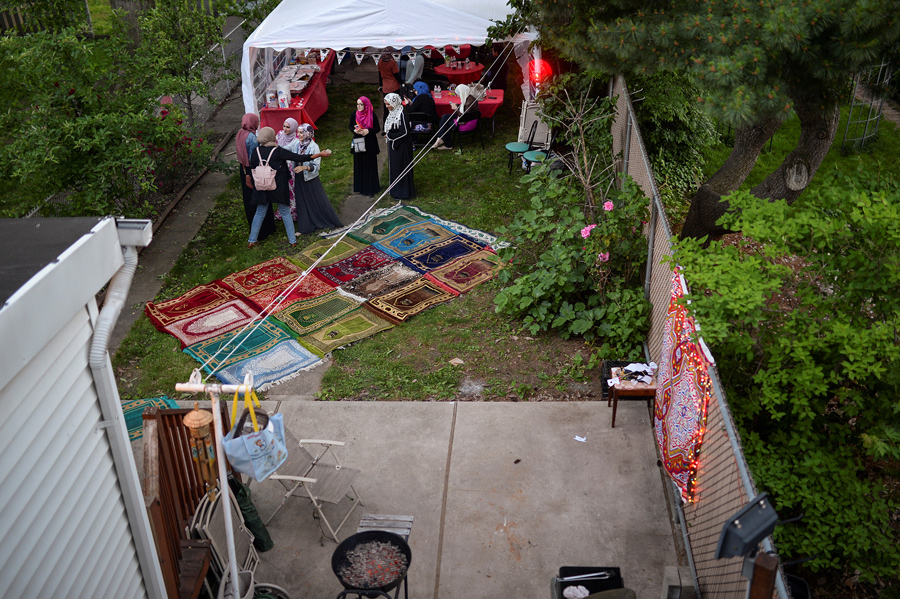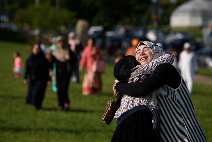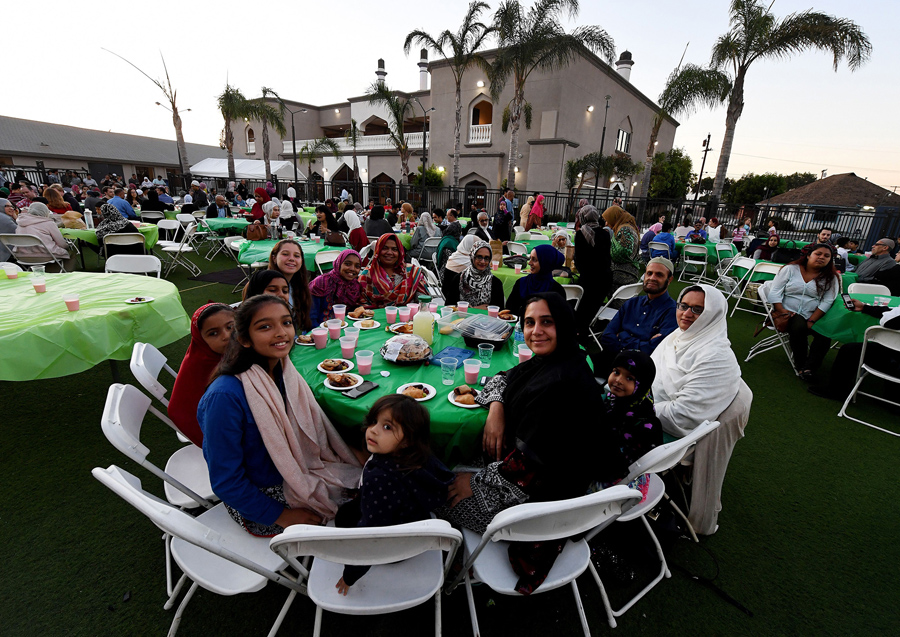 The Muslim three-day Eid al-Fitr festival, marking the end of the month of Ramadan, began this weekend in parts of the world where sightings of the new moon were made. During Ramadan, the Islamic month of fasting, devout Muslims must abstain from food, drink, and sex from dawn until sunset. The fast, one of the five pillars of Islam, is seen as a time for spiritual reflection, prayers, and charity. After sunset, Muslims traditionally break the fast by eating three dates, performing the Maghrib prayer, and sitting down to Iftar, the main evening meal, where communities and families gather together. Gathered here are images of Muslim Americans observing Eid al-Fitr and Ramadan this year in New York, Connecticut, California, Pennsylvania, and New Jersey.