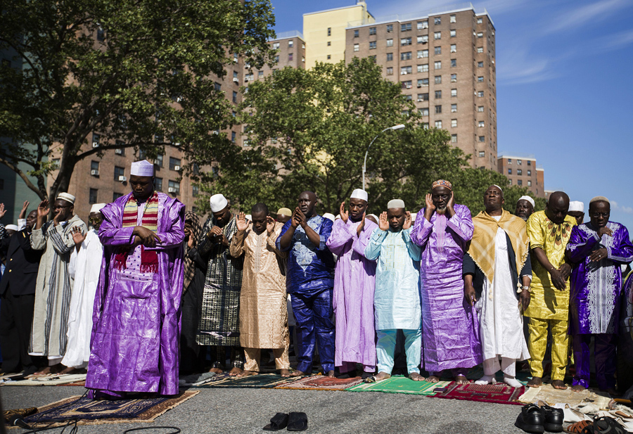 Read morePeople gather on McDonald Avenue for a prayer celebration of Eid al-Fitr, marking the end of the fasting month of Ramadan, in the Kensington neighborhood of Brooklyn on June 25, 2017. #