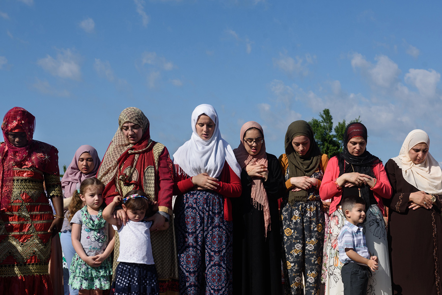 Read moreFemale members of the Egyptian-American Elhariry family (from left) Shahenda, 19, family friend Hanem Ghonaim, 18, daughter Hager, 24, and mother Faten Oda, take part in a Maghrib sunset prayer before Iftar dinner during Ramadan in Manalapan, New Jersey, on May 28, 2017. #