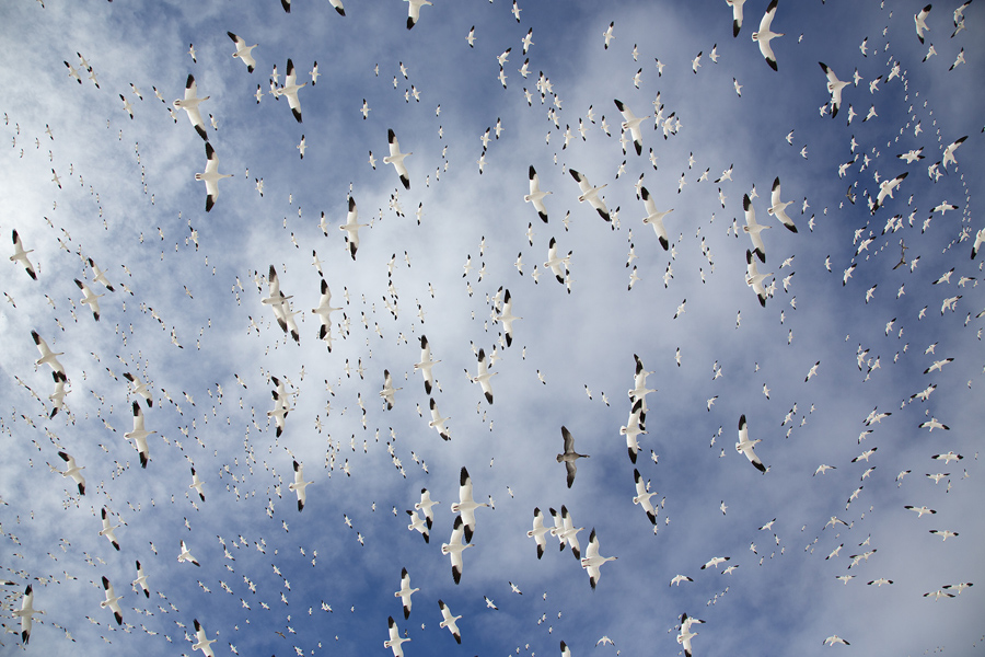Read moreSnow Globe, Winged Life Winner. Since the 1960s, North American populations of snow geese (Chen caerulescens) have exploded an estimated thirteen-fold, in part because of the sprawling fields of grain that have cropped up along their migration route over the past 60 years. In Canada, the species has been officially declared overabundant, largely due to its impact on sensitive Arctic habitats. Descending in vast flocks, the geese leave a wake of mowed-down plants and exposed ground that can take decades to recover. The results can be devastating for other species, such as the endangered rufa red knot (Calidris canutus rufa), that rely on this vegetation for foraging and nesting habitat. Photographed in the Bosque del Apache National Wildlife Refuge in New Mexico. #