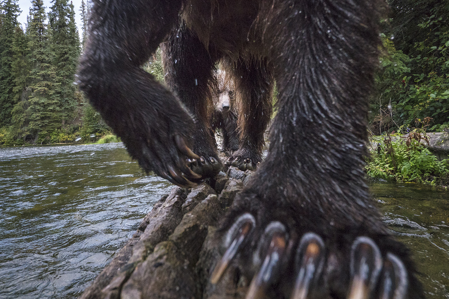 Read moreThe Salmon Catchers, Terrestrial Wildlife Finalist. To capture this view of a mother grizzly bear (Ursus arctos horribilis) and her cub, photographer Peter Mather set up a camera trap on a log that he knew the bears tended to traverse while fishing for salmon in Canada's Yukon River watershed. Packed with both protein and fat, salmon provide grizzlies with a critical source of energy and nutrients during the spawning season. However, the fish can also carry high levels of environmental toxins, such as mercury, that put the bears at risk. Because mercury accumulates in the tissues of organisms and is passed along the food chain, top predators like grizzlies tend to be exposed to higher concentrations of the toxic metal. Indeed, scientists have found that some 70 percent of grizzly bears sampled along the coast of British Columbia over the past decade contained mercury levels above what is considered safe. #