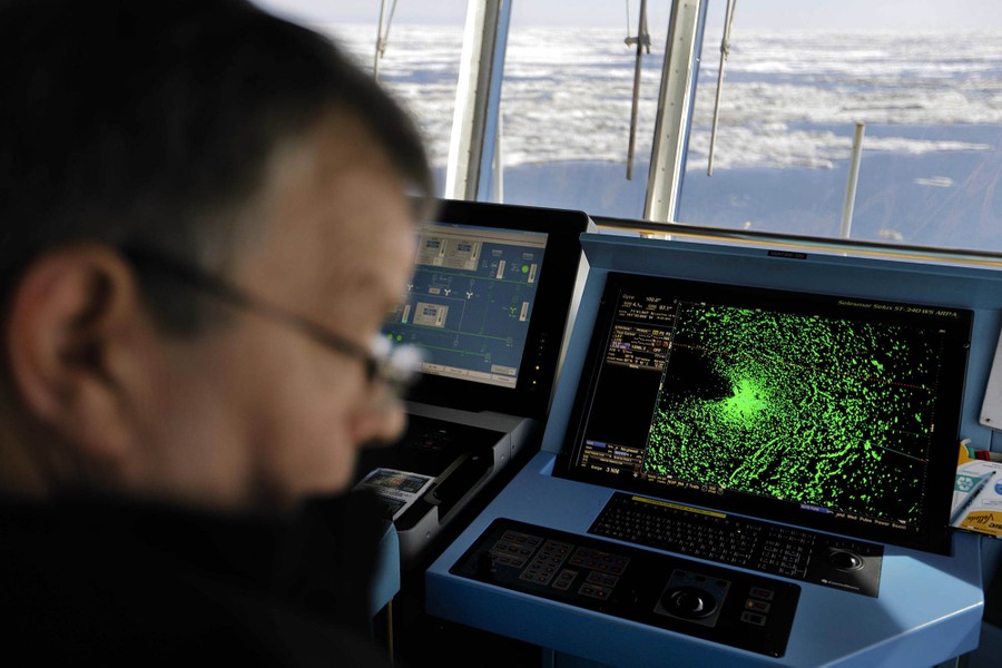 Read moreRadar shows sea ice ahead of the MSV Nordica as chief officer Harri Venalainen navigates the ship through the Beaufort Sea while traversing the Arctic's Northwest Passage, on July 16, 2017. While icebreakers are equipped with sensitive radar systems, ultimately it's up to the ability and experience of the person at the helm to ensure the ship only breaks ice when it’s unavoidable. #