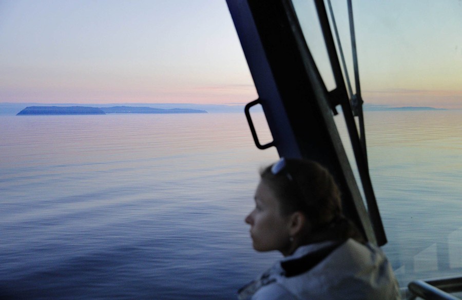 Read moreResearcher Daria Gritsenko looks out toward the American island of Little Diomede, Alaska, and behind it on the right, the Russian island of Big Diomede on July 14, 2017. #