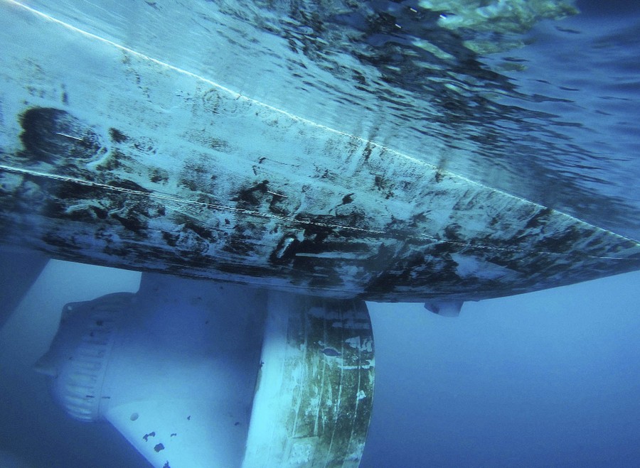 Read moreThe azimuth thruster and hull of the Finnish icebreaker MSV Nordica, seen underwater in the Dolphin and Union Strait off the coast of Canada, on July 19, 2017. The thrusters, which can turn 360 degrees, can break ice up to one-meter thick by churning the water underneath. #