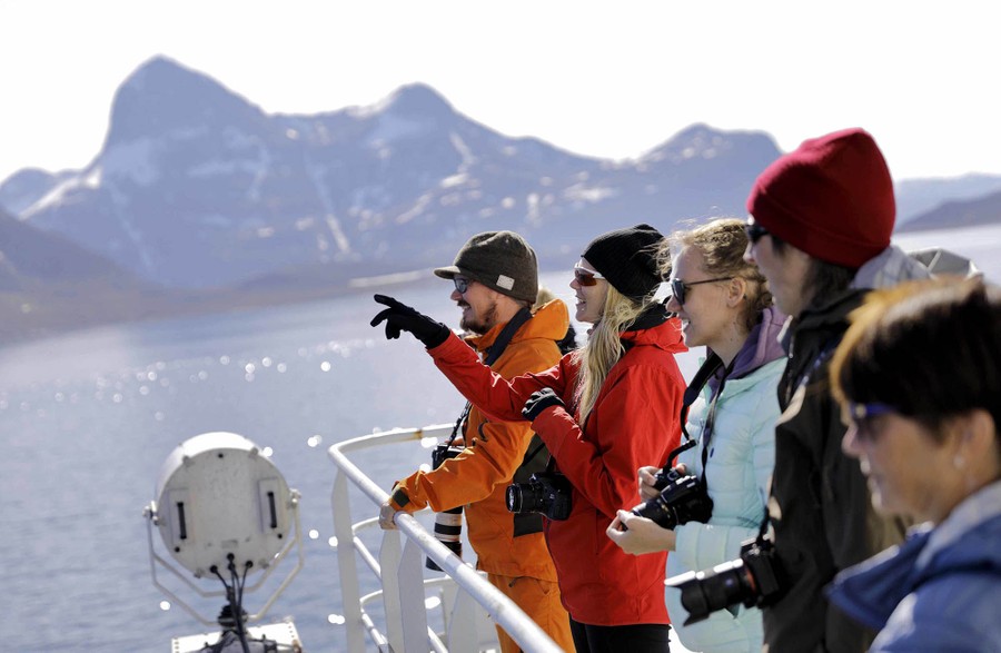 Read moreTiina Jaaskelainen, second from left, and fellow researchers look out from the MSV Nordica as it arrives in Nuuk, Greenland, after traversing the Northwest Passage, on July 29, 2017. #
