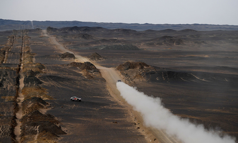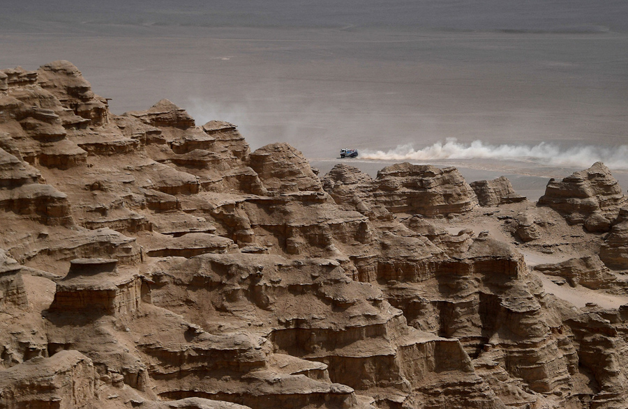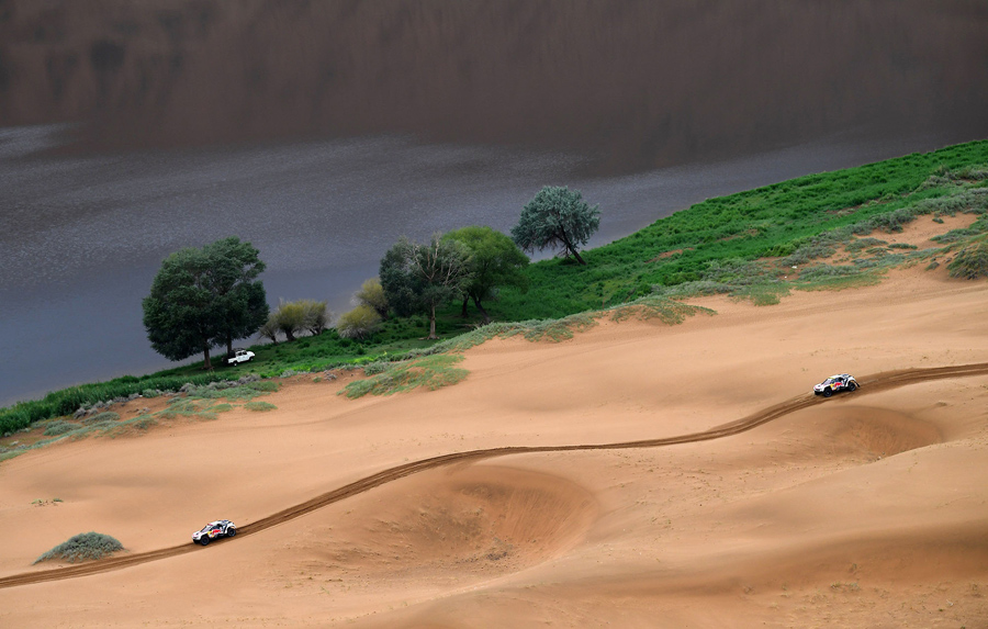 Read moreDriver Binglong Lu (right) and his co-driver He Sha of China pass Peugeot's driver Stephane Peterhansel and his co-driver Jean Paul Cottret of France during Stage 10 between Hami and Dunhuang, on July 18, 2017. #