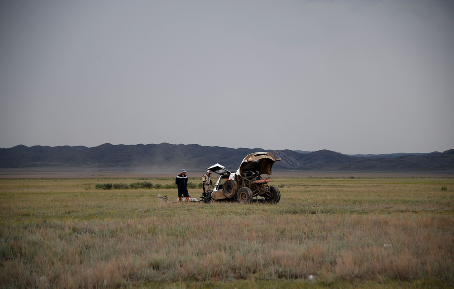 For the past two weeks, more than 90 rally racers from 35 countries drove 5,965 miles (or 9,600 kilometers) in 14 legs from Moscow, Russia, through Kazakhstan, ending in Xi'an, China. The ninth edition of the Silk Way rally race, which wrapped up on July 22, was covered by the AFP photographer Franck Fife, from the air and the ground. Below are a handful of images from the competition, and the varying landscapes that challenged the racers.