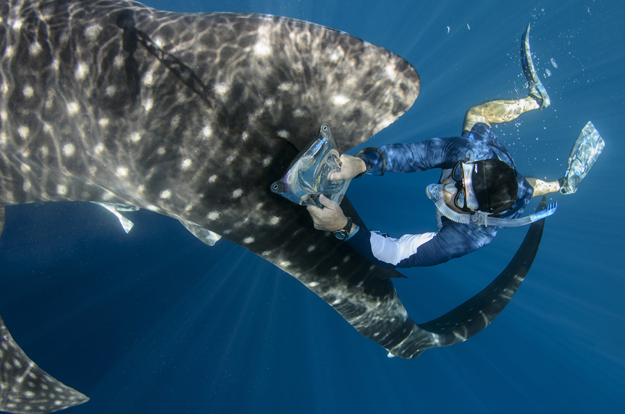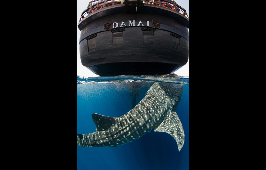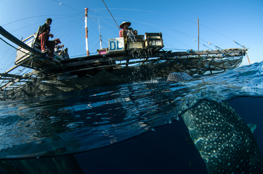 In Cenderawasih Bay, in West Papua, Indonesia, fishermen set out for days on hand-made floating platforms called bagans. At night, they turn on lights to attract squid and baitfish, and lower nets from their bagans—also attracting whale sharks to the smell and commotion. Bagan fishermen have long believed that whale sharks bring good luck and feed them bits of baitfish. Today, the luck comes to them in the form of marine tourism, as people travel to Cenderawasih Bay for up-close encounters with these gentle giants. Photographer Pete Oxford visited the bay, and returned with these photos, recently published in the online magazine bioGraphic.