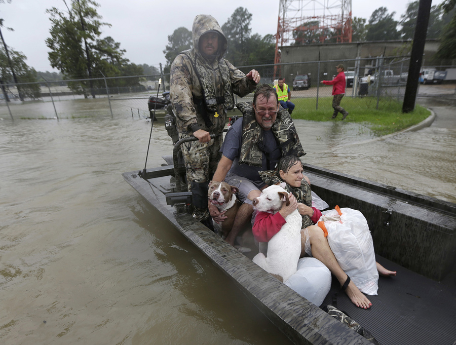 As the floodwater continues to rise in southeastern Texas, residents have been trying to reach safety for days now—many of them bringing along their beloved furry companions. The dogs and cats of displaced flood victims are being cared for by owners, neighbors, and first responders across the region, finding medical attention and safety in shelters, and remaining close to their owners.