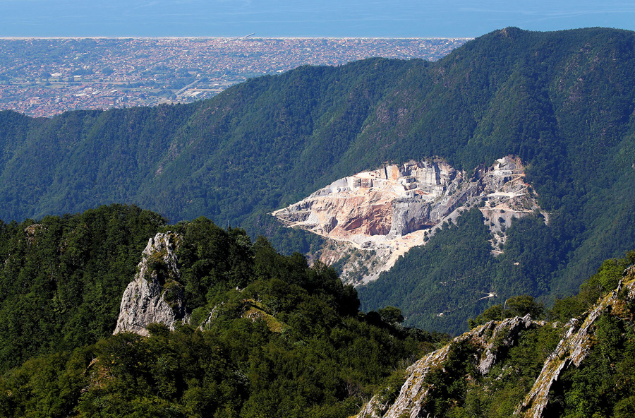 High in the Apuan Alps of Tuscany sits Monte Altissimo, a 5,213-foot (1,589-meter) mountain, climbed in 1517 by the Italian artist Michelangelo in pursuit of fine marble for his sculptures. There, according to Reuters, he “found the marble of his dreams. It was, the Renaissance master wrote, ‘of compact grain, homogeneous, crystalline, reminiscent of sugar.’” After receiving the blessing of Pope Leo X, Michelangelo worked for years to open a functional quarry, but was unsuccessful, and the project faltered. Today, five quarries operate on the mountain, using heavy machinery and modern techniques to carve up the hillside and extract the prized marble.
