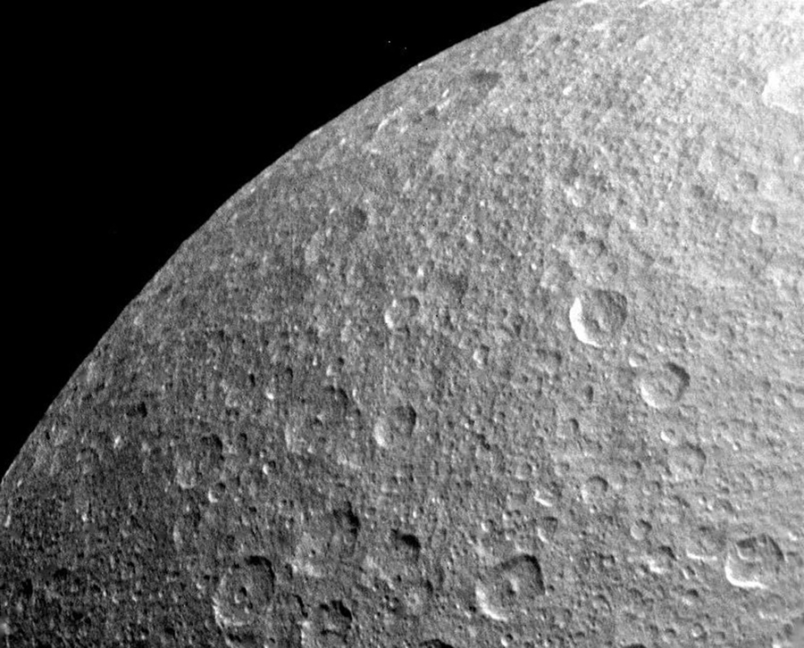 Read moreMultiple impact craters are seen on the ancient surface of Saturn's moon Rhea in this picture taken by Voyager 1 on November 12, 1980, at a range of 73,000 kilometers (45,000 miles). #