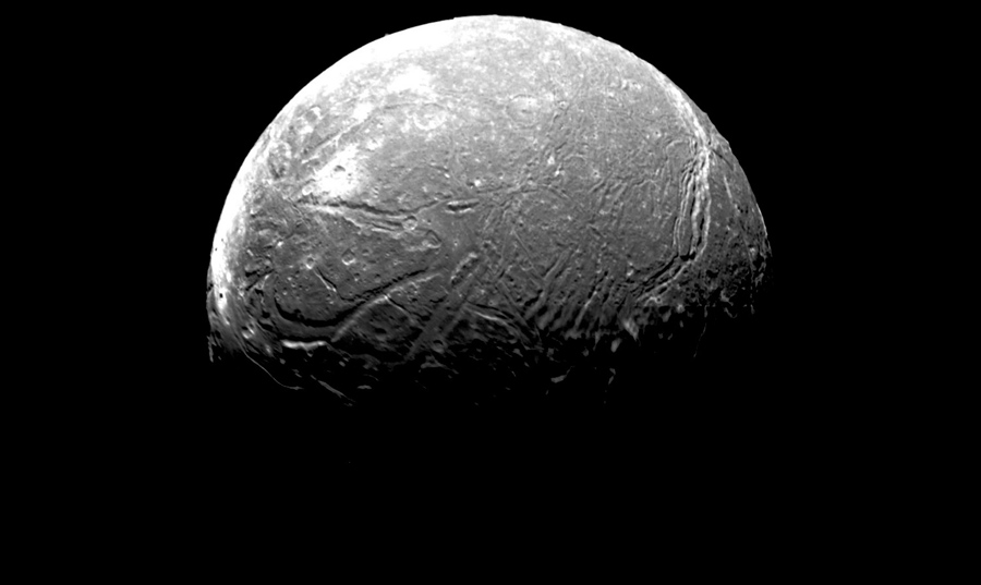 Read moreThis image of Miranda, obtained by Voyager 2 on approach, shows an unusual "chevron" figure and regions of distinctly differing terrain on the Uranian moon. Voyager was 42,000 kilometers (26,000 miles) away when its narrow-angle camera acquired this clear-filter view. #