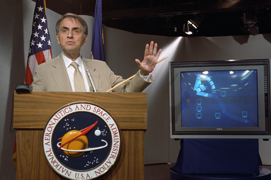Read moreAstronomer Carl Sagan speaks at a news conference where NASA made available the last pictures taken by Voyager 1, which show the solar system as a "family portrait" viewed from the outside. #