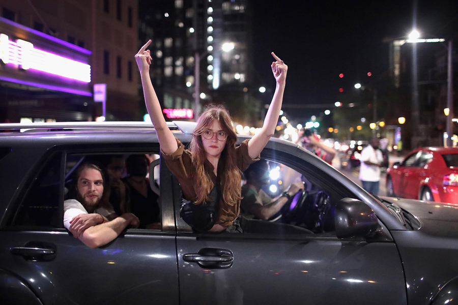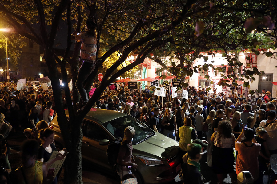 On Friday, a judge in St. Louis found Jason Stockley, a white former St. Louis police officer, not guilty of first-degree murder in the death of a black man named Anthony Lamar Smith. Smith was shot and killed by Stockley after a high-speed chase in 2011. Throughout the weekend, groups of protesters took to the streets of St. Louis, voicing their anger with the decision. At night, as most of the peaceful demonstrators dispersed, others took their anger out on police cars and nearby businesses, smashing dozens of windows. More than 80 arrests were reported on Sunday alone.