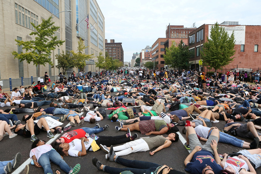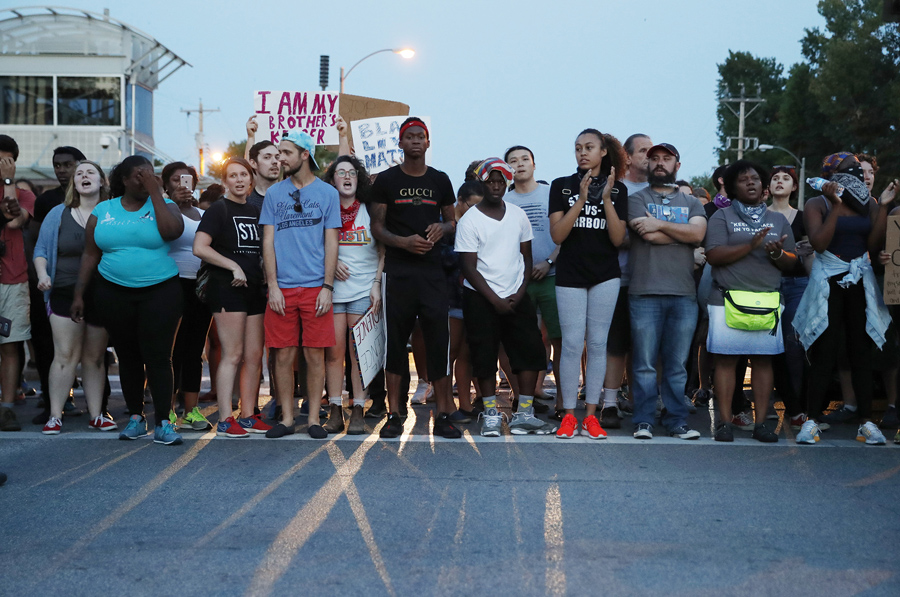 Read morePeaceful protesters take to the streets during the second day of demonstrations after a not-guilty verdict in the murder trial of former St. Louis police officer Jason Stockley, in St. Louis, on September 16, 2017. #