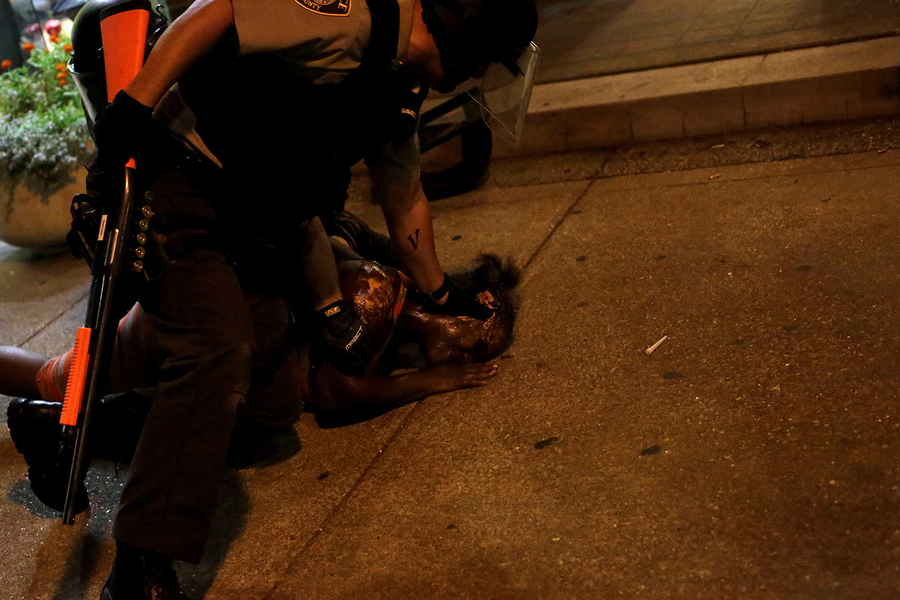 Read morePolice arrest a man as they try to clear a violent crowd on September 16, 2017, in University City, Missouri. Earlier, protesters had marched peacefully in response to a not-guilty verdict in the trial of former St. Louis police officer Jason Stockley. #