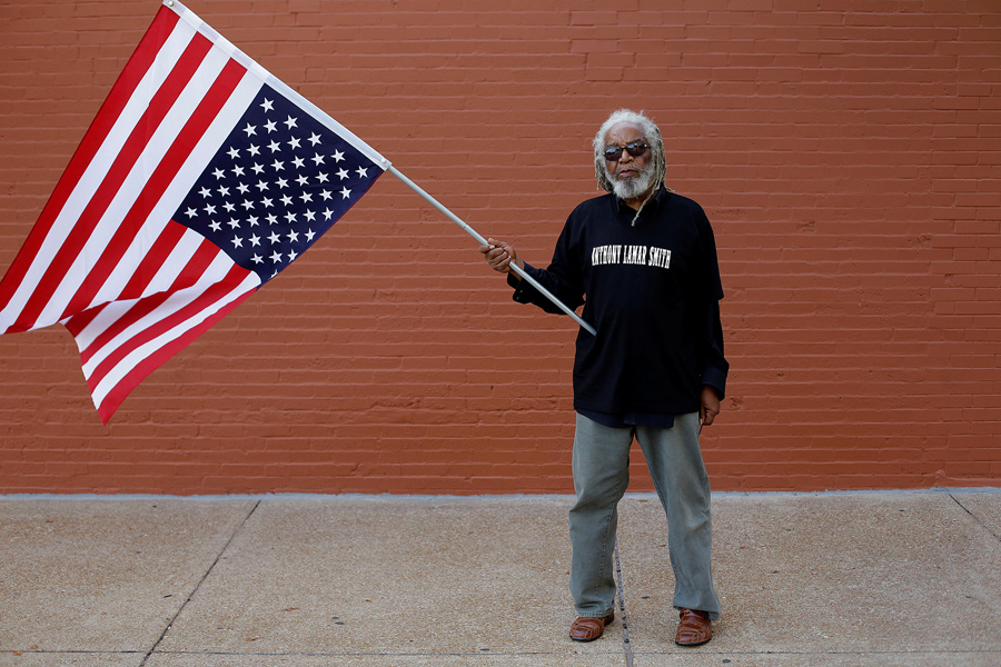 Read moreBill Monroe poses as he protests the not-guilty verdict in the murder trial of Jason Stockley, a former St. Louis police officer charged with the 2011 shooting of Anthony Lamar Smith, in St. Louis, Missouri, on September 17, 2017. #