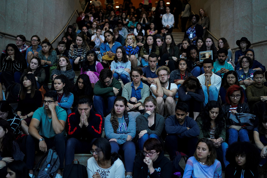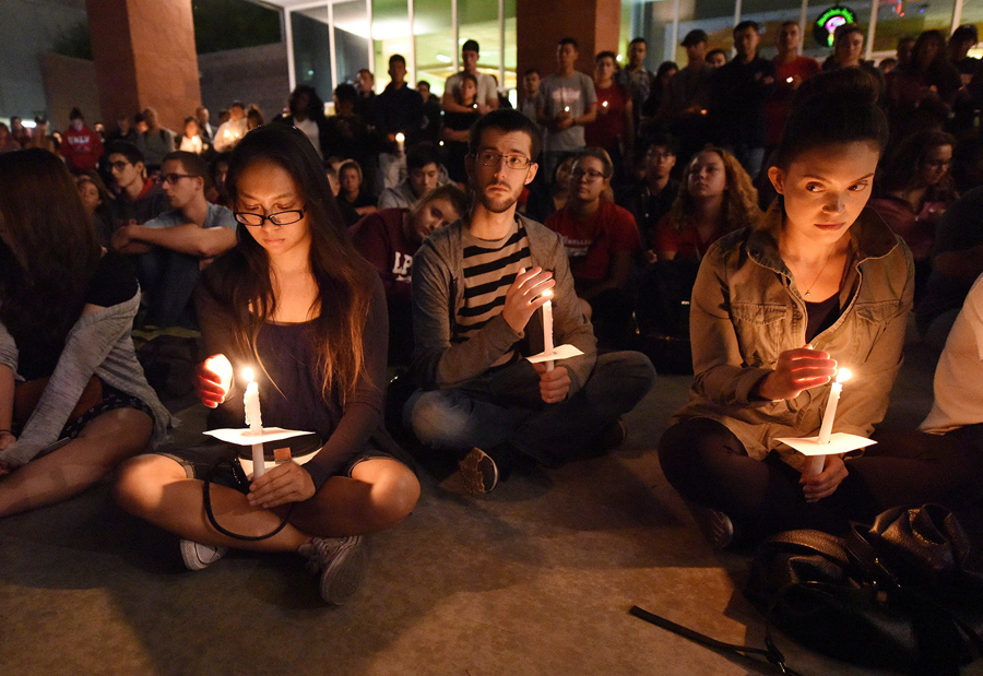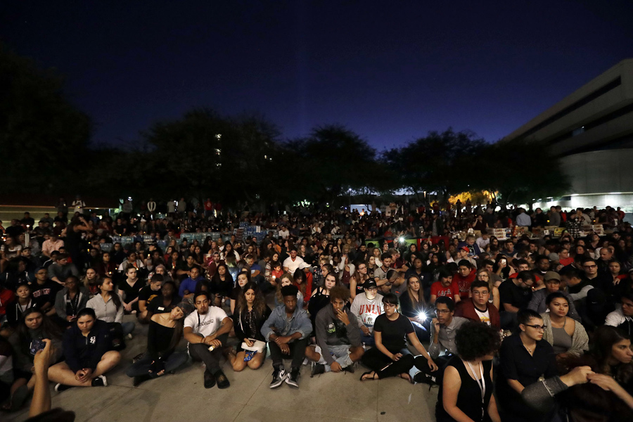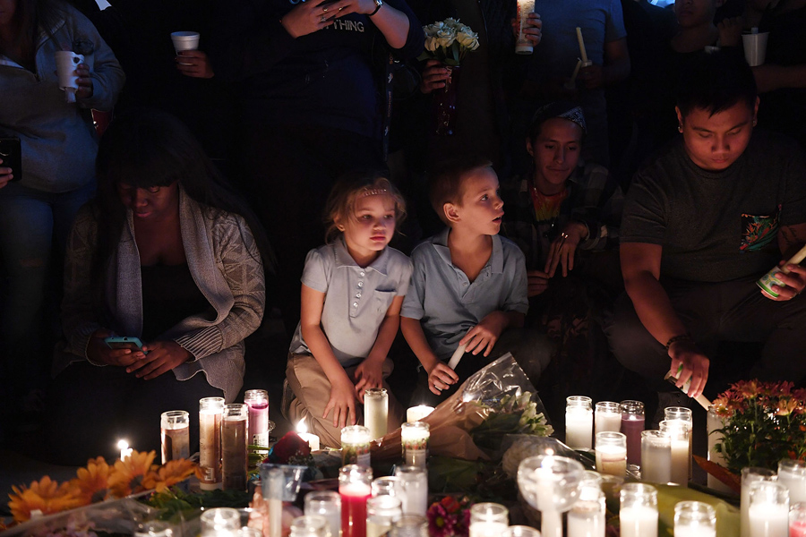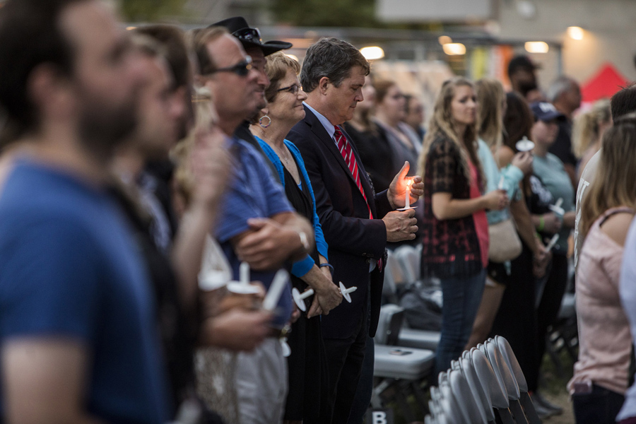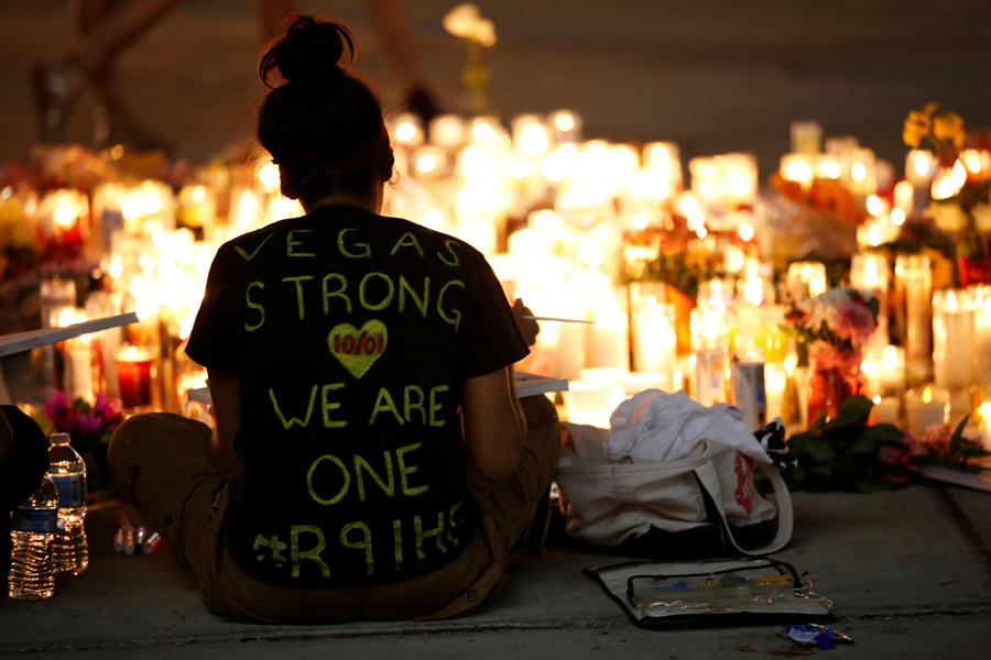 In an attack in Las Vegas on Sunday, a lone gunman is believed to have fired automatic weapons into a gathering of 22,000 fans enjoying a country music festival. 59 people were killed, and hundreds more were wounded. The crowd scattered, seeking safety. Then, people gathered together again—to protect, to carry the wounded, to donate blood, to heal, to pray, and to care for one another. Memorials and candlelight vigils took place in several places around the country, with citizens and government officials voicing support for the victims and their families.