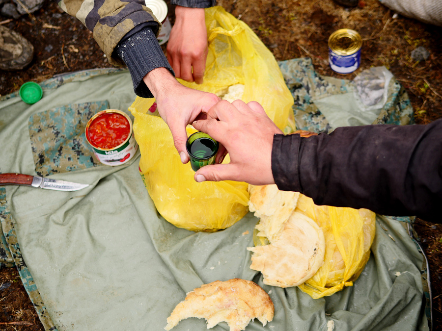 Read moreThey share “chacha,” a viciously strong liquor made from the leftovers of wine production. The shepherds down three shots each. Every swill is accompanied with a toast—to the mountains, guests, and to a friend who died recently on the road they’re about to take. #