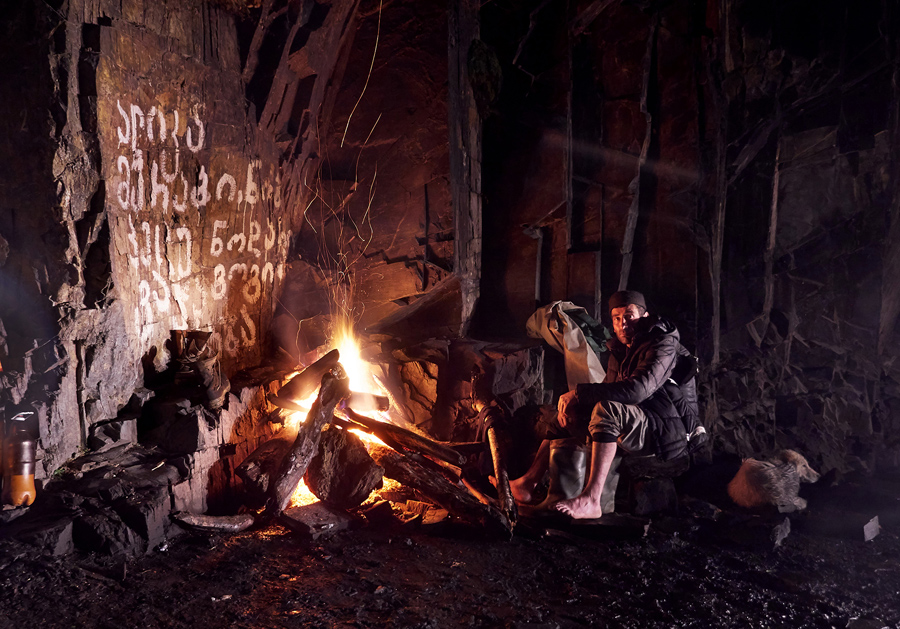Read moreAfter the shepherds make a kind of rudimentary camp, the men get dry as best they can, and countless shots of chacha are knocked back, before they finally curl up into their felt sleeping bags. Little Georgik slinks inside Dato’s sleeping bag. #