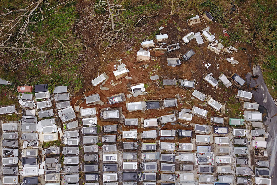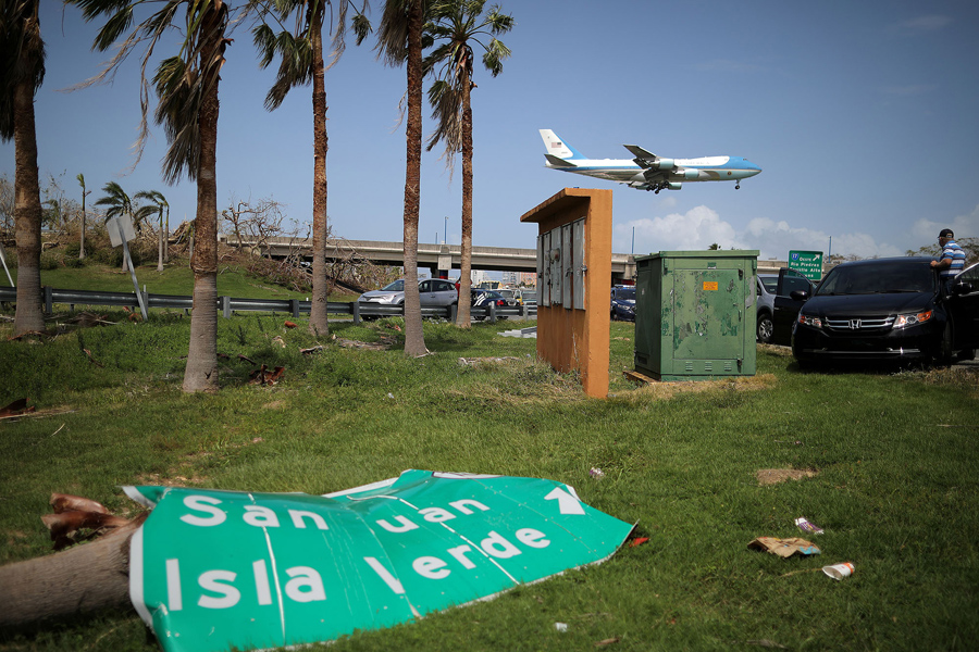 Two weeks after Hurricane Maria smashed Puerto Rico, President Donald Trump flew to San Juan to assess the situation and meet with local officials, aid workers, and residents. The situation in Puerto Rico remains grim. The task of recovery and rebuilding homes and infrastructure on the island—home to 3.4 million people—is daunting. As federal agencies continue to ramp up aid efforts across Puerto Rico, the immense scale and depth of the the impact of Hurricane Maria becomes clearer every day. Gathered here are images from just the past week.