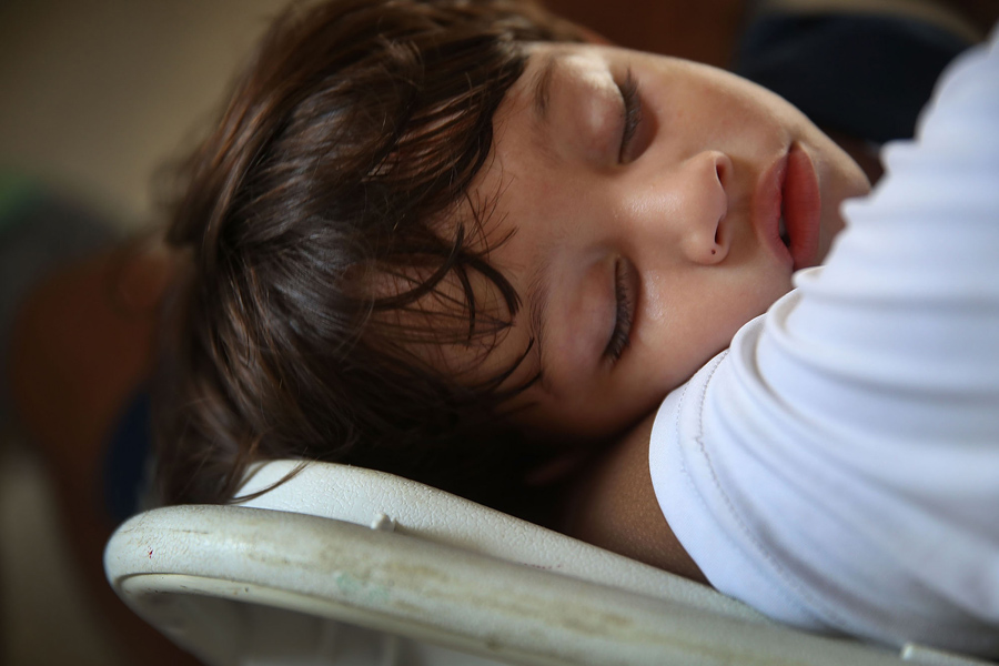 Read moreMikael Santiago, 2, is held as he waits for a First Medical Relief team member to examine him at the Torres de Francia complex, as they deal with the aftermath of Hurricane Maria, on October 1, 2017, in San Juan, Puerto Rico. Members of the First Medical Relief team visited the complex that only has electricity and water for one hour a day to help those who have health-care needs. #