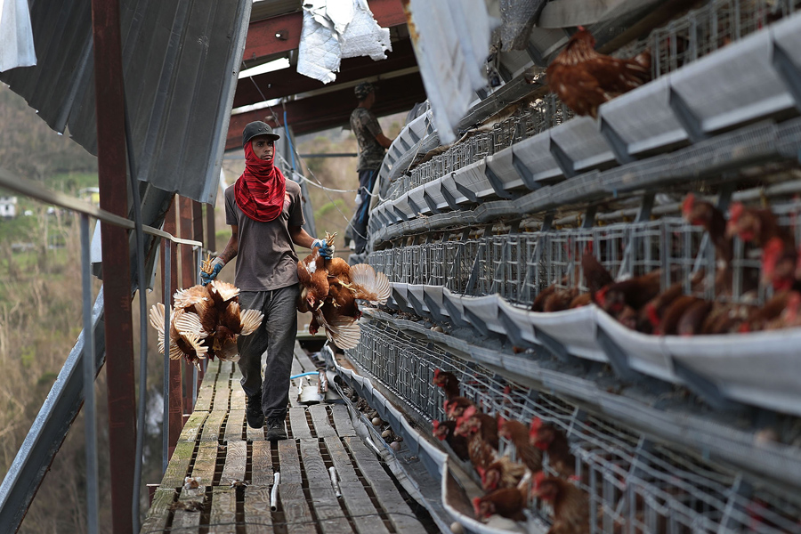 Read moreWorkers sort the live chickens from the dead ones at the Corporacion Avicola Morovis, Inc. chicken farm on October 2, 2017, in Morovis, Puerto Rico. The farm lost approximately 80,000 chickens when Hurricane Maria destroyed much of the area and they may have to let go of 15 of their workers since the farm can no longer operate. #
