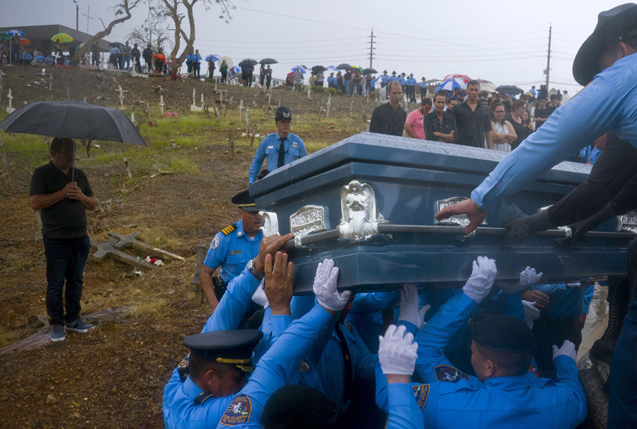 Read moreHonor guards carry the coffin of policeman Luis Angel Gonzalez Lorenzo, killed during the passage of Hurricane Maria when he tried to cross a river in his car, during his funeral at the cemetery in Aguada, Puerto Rico, on September 29, 2017. #
