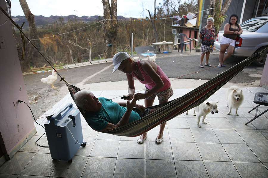 Read moreIrma Maldanado checks on her father, Ignacio Maldanado Ortiz, who uses an oxygen machine due to his emphysema, in Corozal, Puerto Rico, on October 2, 2017. Irma said her father is in need of oxygen but has no way of getting a supply in the aftermath of Hurricane Maria. #