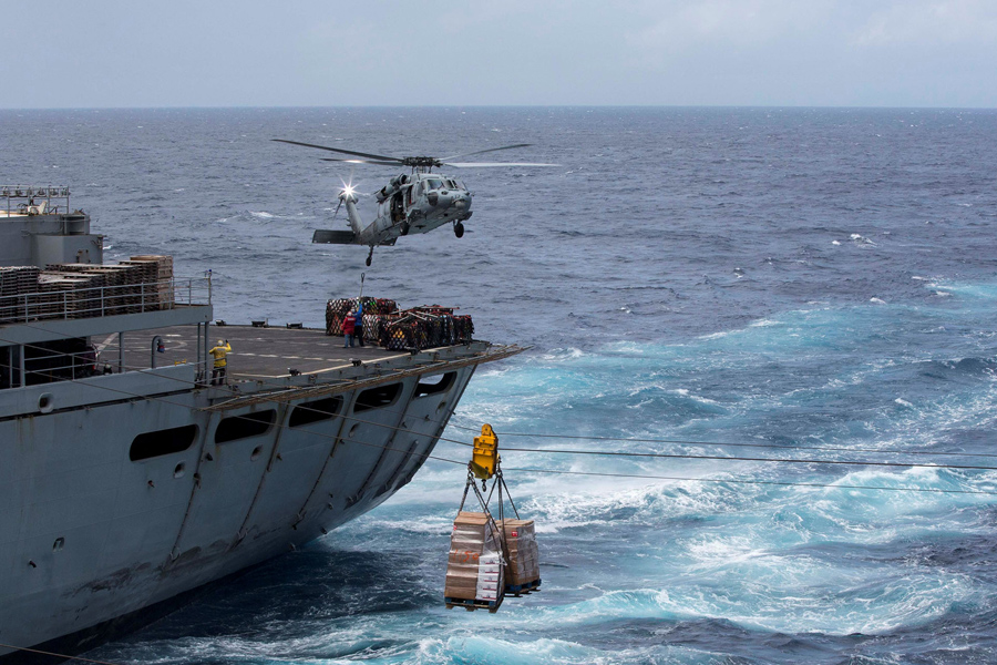 Read morePallets of supplies are transferred from the fast combat support ship USNS Supply (T-AOE 6) to the amphibious assault ship USS Kearsarge (LHD 3) during a replenishment-at-sea for continuing operations for relief efforts in the aftermath of Hurricane Maria in Puerto Rico on September 28, 2017. #