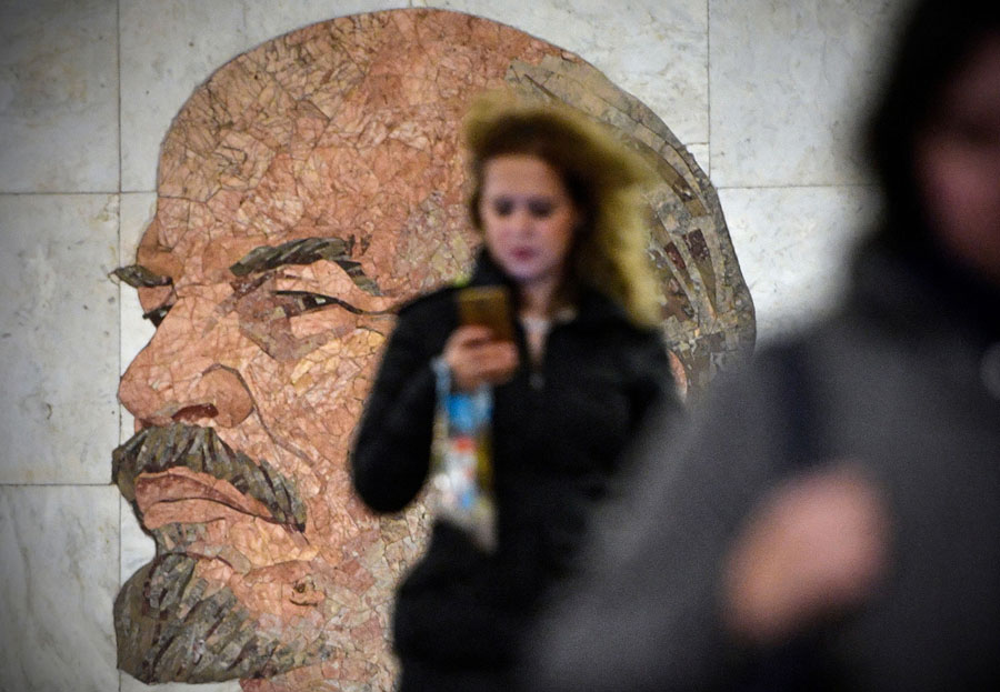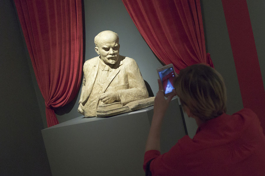 Read moreA woman photographs a sculpture of Lenin during the opening of "Energy of the Dream. Сentennial of 1917 Revolution" exhibition in Moscow, Russia, on November 2, 2017. #