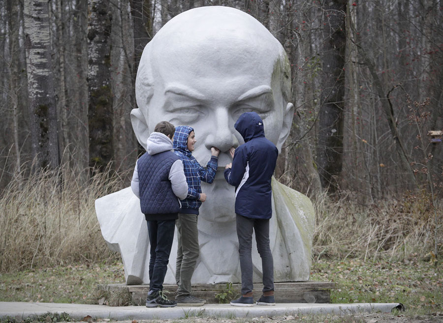 Read moreIn this photo taken on October 4, 2017, visitors take photos near a statue of Lenin in Grutas Park, in Druskininkai, some 120 kilometers (75 miles) south of the Lithuanian capital Vilnius, Lithuania. Grutas Park is a sculpture garden of Soviet-era statues and other Soviet ideological relics from the times of the Lithuanian SSR. #