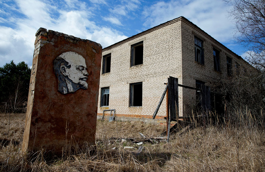 Read moreA panel with a portrait of Lenin near an abandoned building in the 30-km (19 mile) exclusion zone around the Chernobyl nuclear reactor in the abandoned village of Orevichi, Belarus, on March 12, 2016. #