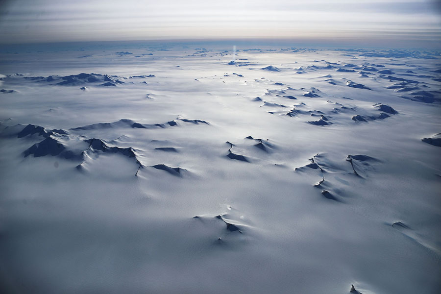 Read moreA "nunatak," or mountain peak that projects through ice, stands alone in a vast plain of ice and snow, seen from NASA's Operation IceBridge research aircraft above Antarctica on November 3, 2017. #