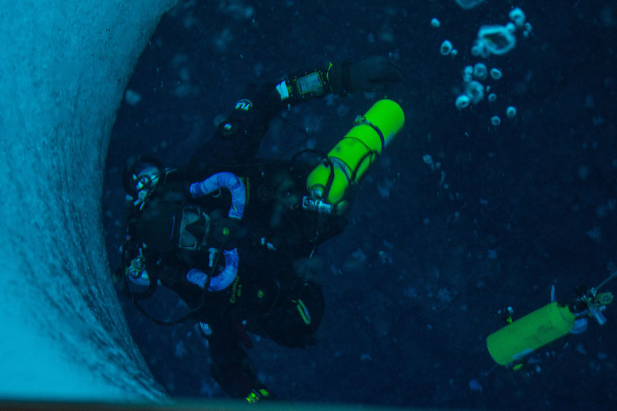 Read moreDiver Steve Rupp looks up through a hole in the sea ice while testing a new scuba rebreather system on October 21, 2016. Rupp and other divers are testing to see how well various rebreather systems work in the frigid waters in McMurdo Sound. #