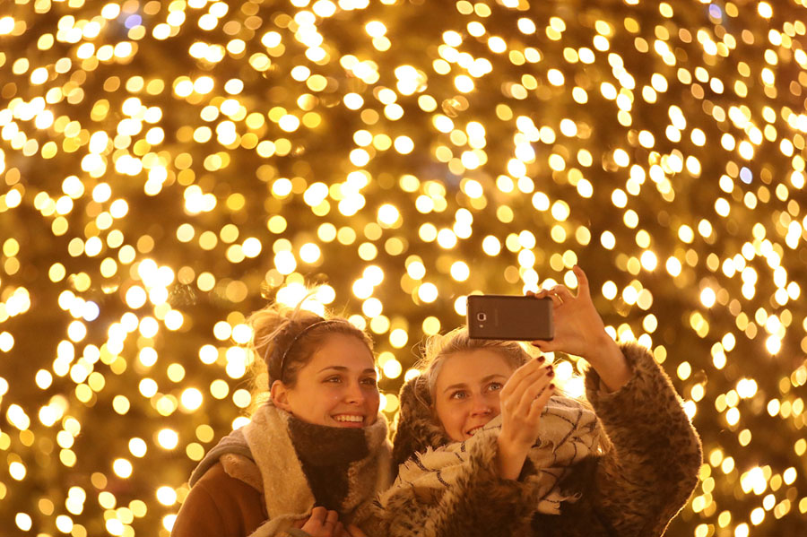 Read moreTwo young visitors from Mozambique and Ireland shoot a selfie in front of a giant Christmas tree at the annual Christmas market at Alexanderplatz in Berlin, Germany, on November 28, 2017. #