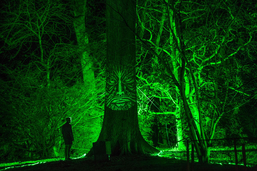 Read moreA man looks at a illuminated face on a tree at the launch of the "Enchanted Christmas" attraction at Westonbirt Arboretum near Tetbury in Gloucestershire, England, on November 29, 2017. The popular annual installation, which features illuminations and interactive features along the trail, will take place on long weekends from December 1 through 18. #