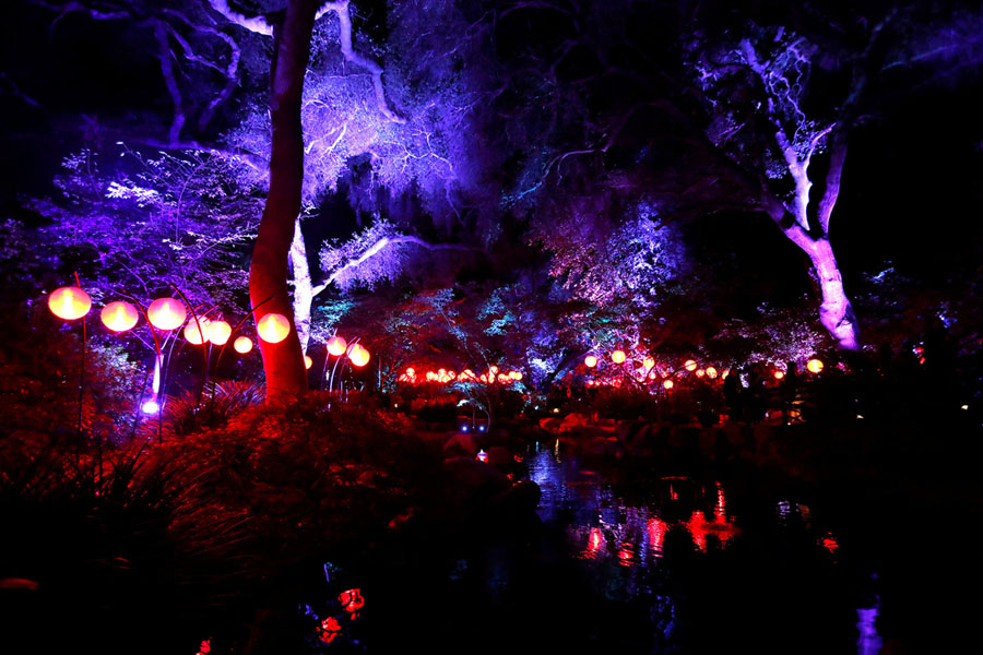 Read moreA visitor interacts with the installation Celestial Shadows, which is part of the exhibit "Enchanted: Forest of Light" at Descanso Gardens in the city of La Cañada Flintridge, California, on November 21, 2017. #