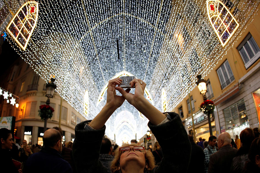 Read moreA woman uses a mobile phone to take pictures of Christmas lights during a show of lights and songs to mark the start of the Christmas season at Marqués de Larios street in downtown Málaga, Spain, on November 24, 2017. #