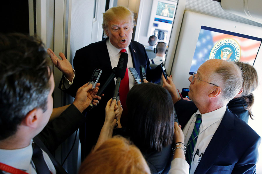 Read moreMembers of the White House Press Corps take a moment to file between events at the presidential Blue House in Seoul, South Korea, where President Trump was meeting with South Korea's President Moon Jae-In on November 7, 2017. #