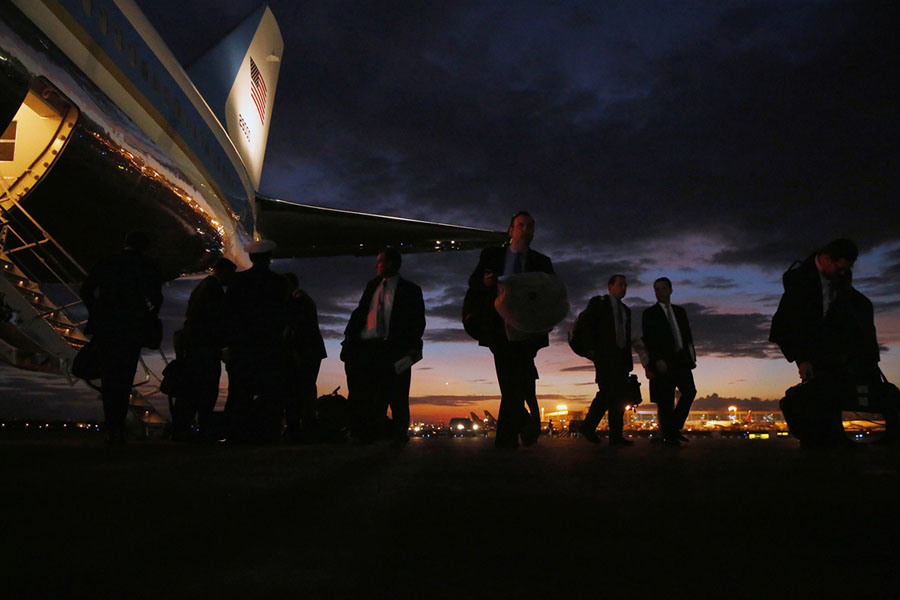 Read moreWhite House staff members deplane from Air Force One after arriving with President Trump at Ninoy-Aquino International Airport in Manila, Philippines, on November 12, 2017. #