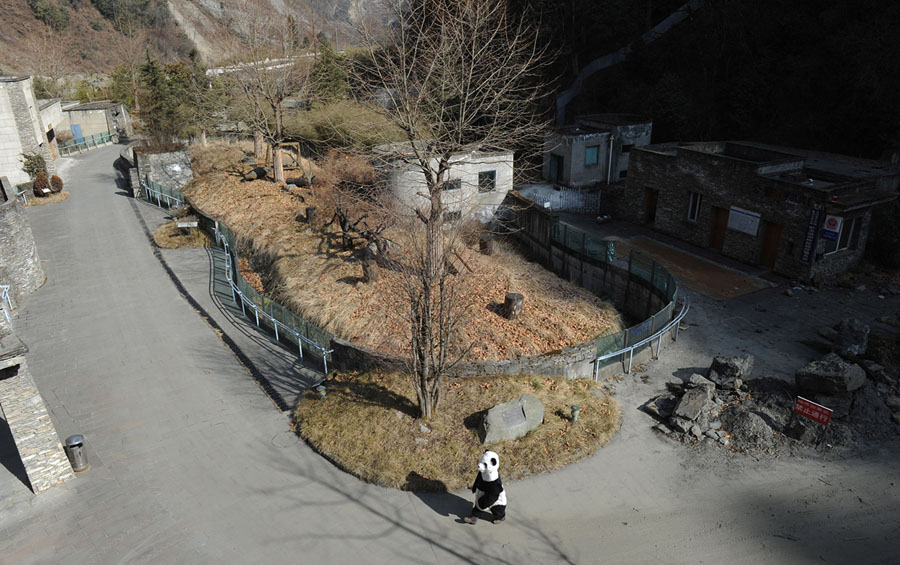 Read moreA researcher dressed as panda places Tao Tao in a new enclosure at the Hetaoping China Conservation and Research Center for the Giant Panda on February 20, 2011. The reintroduction program had entered the second phase during which Tao Tao and its mother Cao Cao were transferred to a larger wild enclosure for further training. #
