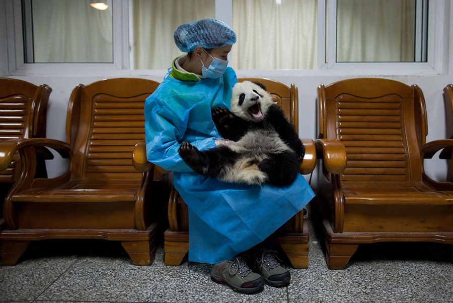 Read moreA feeder dresses up to give a routine check to a giant panda at the China Conservation and Research Center for the Giant Panda on February 3, 2011, in the Wolong Nature Reserve. #