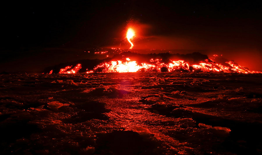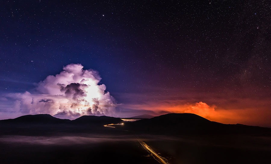 Read moreA long-time exposure shows a lightning storm and the reddish glow of molten lava, which flows from the Piton de la Fournaise, one of the world's most active volcanoes, on the French Indian Ocean Réunion Island on February 3, 2017. #