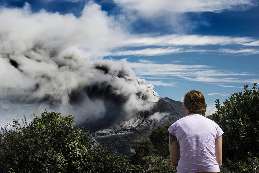 Read moreAn Indonesian woman watches an eruption of Mount Sinabung from Tiga Pancur village, in Karo in North Sumatra on November 3, 2017. Sinabung roared back to life in 2010 for the first time in 400 years. After another period of inactivity it erupted once more in 2013, and has remained highly active since. #