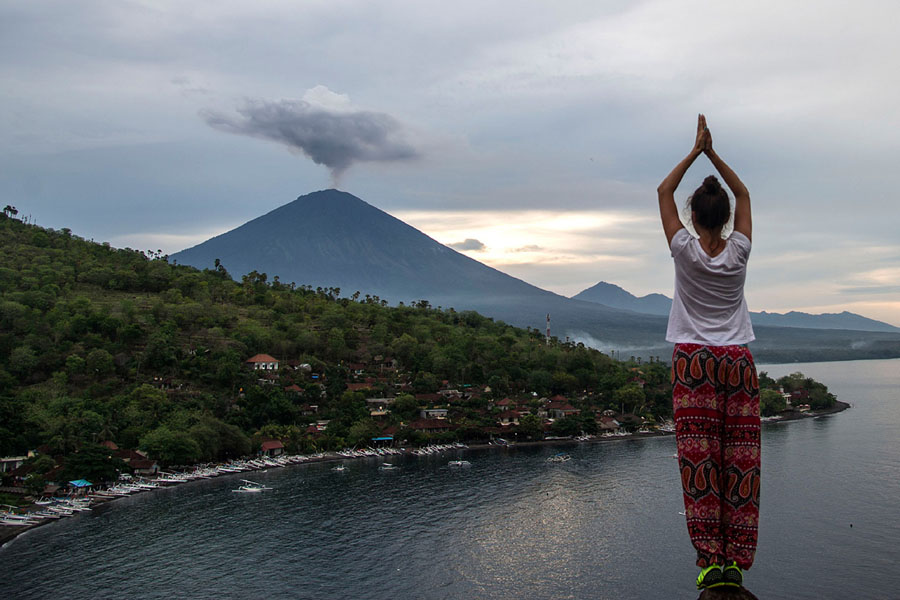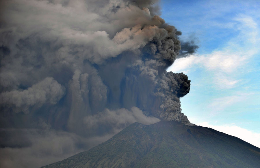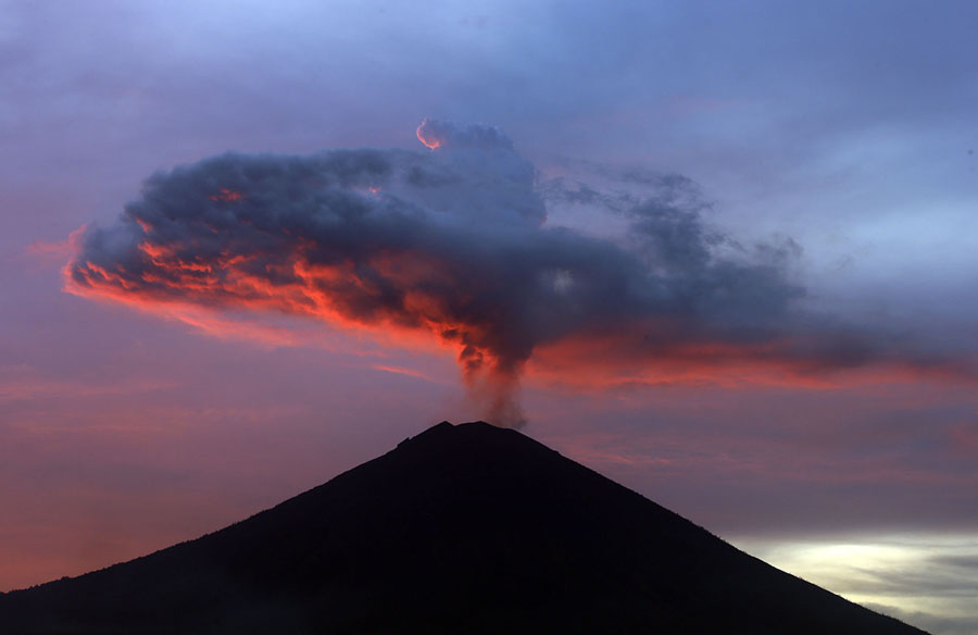 Read moreClouds of ash from Mount Agung are lit with warm sunset light in Karangasem, Bali, Indonesia, on November 30, 2017. Authorities told tens of thousands of people to leave an area extending 10 kilometers (6 miles) from the volcano as it belched volcanic materials into the air. #