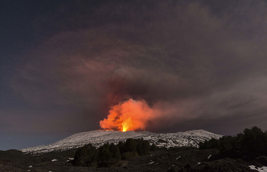 Read moreA tourist stands in front of Mount Etna, Europe's tallest and most active volcano, as it spews lava during an eruption on the southern island of Sicily, Italy, on February 28, 2017. #
