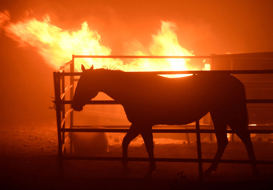 Read moreA horse which was left behind after the early-morning Creek Fire broke out in the Kagel Canyon area in the San Fernando Valley north of Los Angeles, photographed in Sylmar, California, on December 5, 2017. #