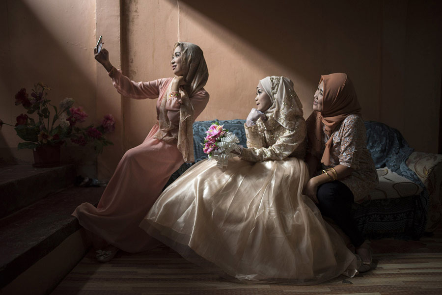 Read moreBride Katty Malang Mikunug takes a photo with friends before her wedding in Saguiaran, Lanao del Sur, southern Philippines, on October 21, 2017. Paulo Mamayo Ambor, a resident of Marawi who was displaced by the fighting between government troops and ISIS-inspired militants, wed Mikunug, a resident of a neighboring town in Saguiaran. #