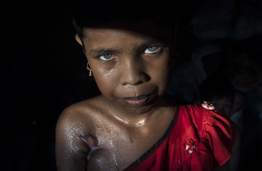 Read moreRohingya refugee Azida Begum, 11, was shot twice, under her arm and on her leg. She was shot by the Burmese military when they killed her mother as she was fleeing her village in Myanmar. Azida now lives with her grandmother; her father died years ago. This photograph was taken in Palongkhali, Bangladesh, on October 10, 2017. #